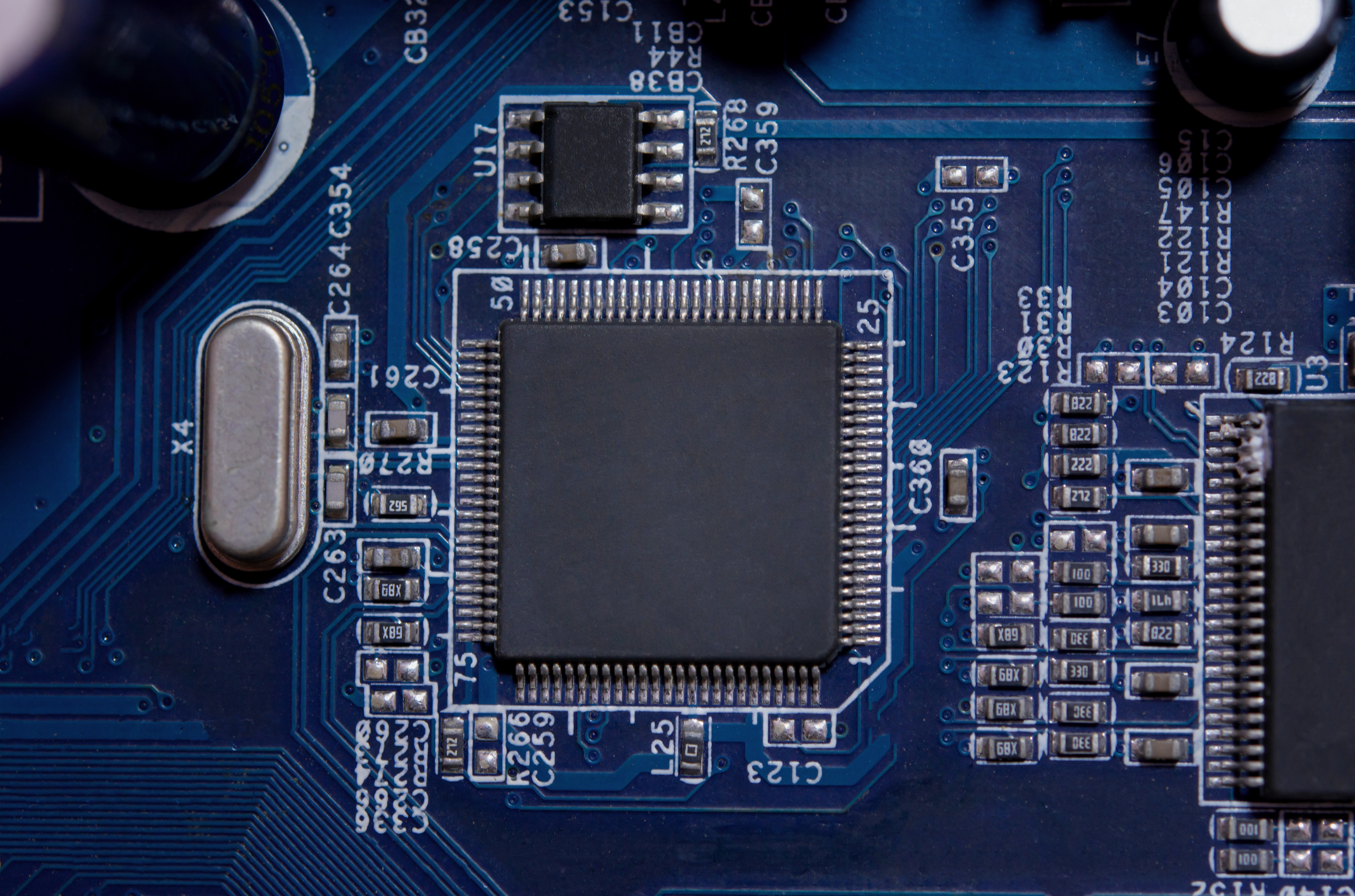 Fig.: A printed circuit board or circuit board consists of various semiconductors whose individual functions enable complex systems.