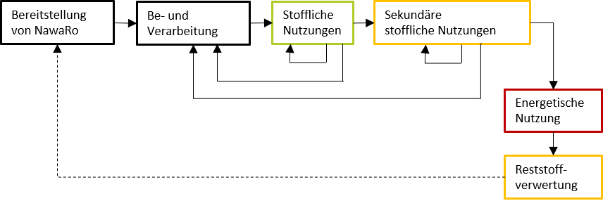 Ziel der biobasierten Industrie ist die stoffliche und energetische Nutzung innerhalb einer „Nutzungskaskade“. Das bedeutet, alle Komponenten des Rohstoffes in mehreren Zyklen bestmöglich auszunutzen und erst am Ende ihrer (mehrmaligen) Nutzung der energetischen Verwertung zuzuführen.