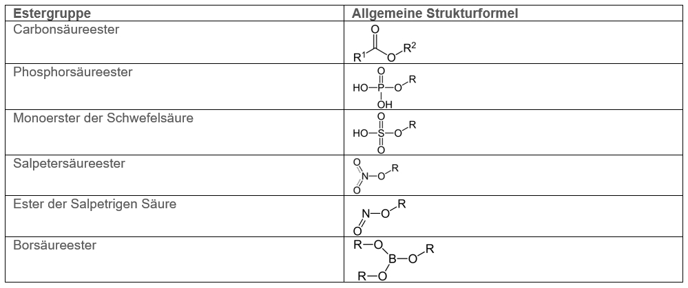 Man unterscheidet zwischen verschiedenen Gruppen von Estern: