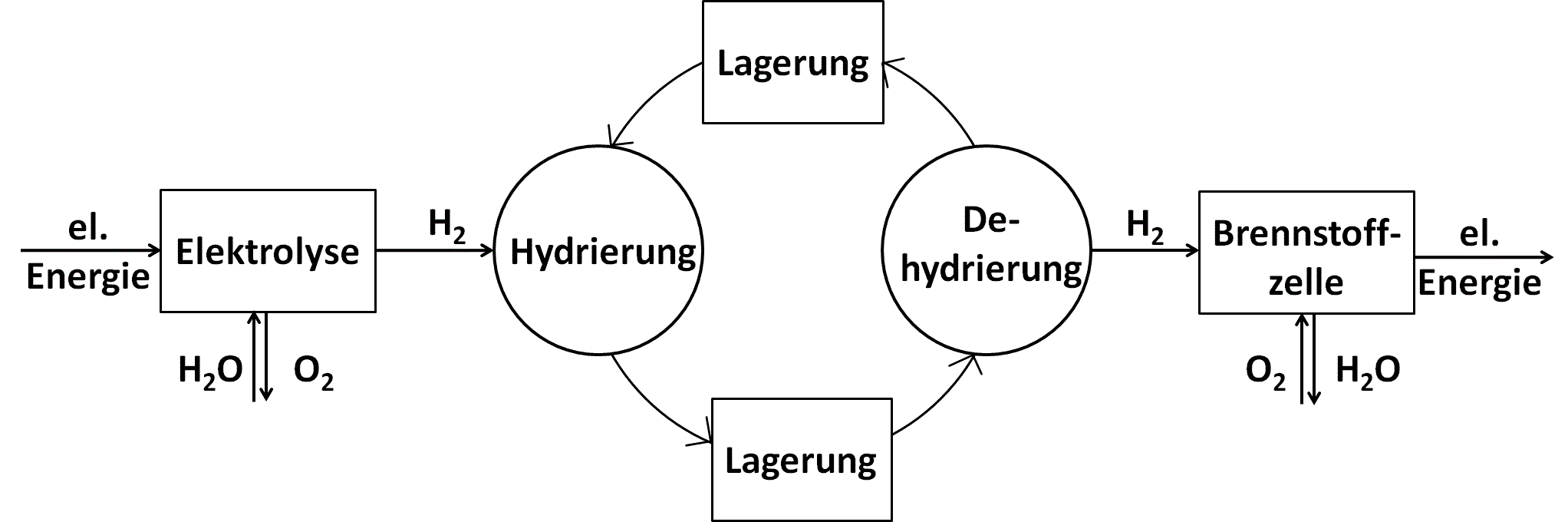 Schema Energiespeicherung über chemische H2-Speicherung,