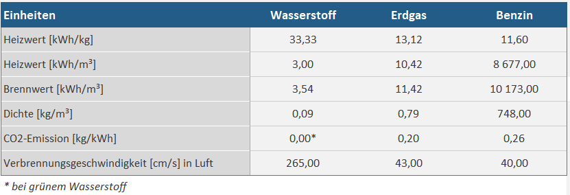 Vor allem folgende Eigenschaften machen die Nutzung von Wasserstoff interessant: